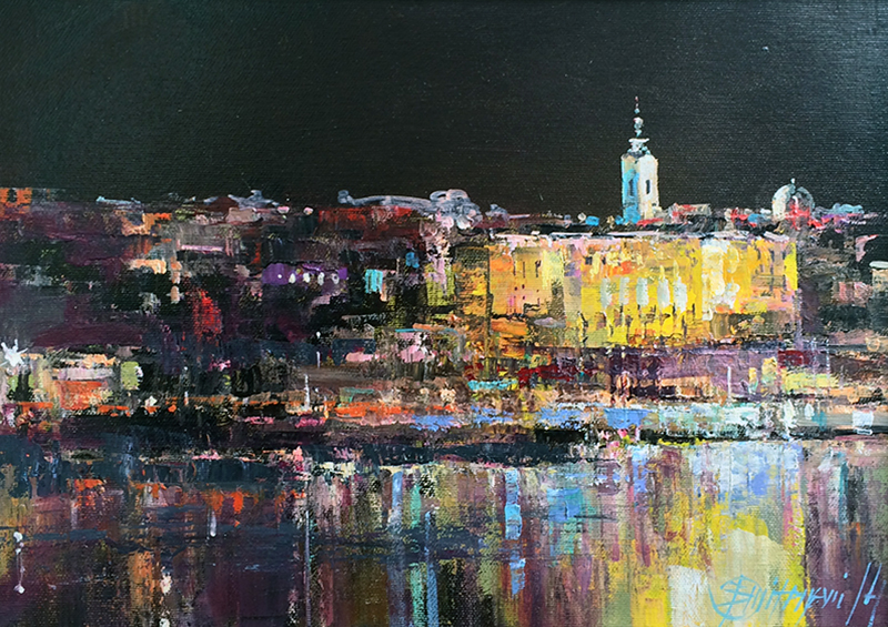 Belgrade By Night By Branko Dimitrijevic, Oil Painting